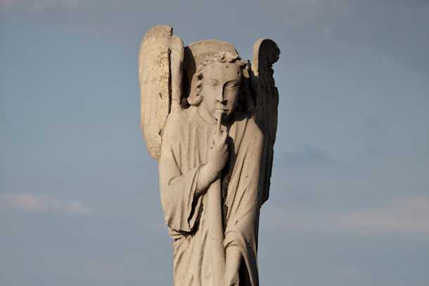 This statue, known as the Angel of the Judgement Day, is located at the top of the gable of the nave. The angel announces the Judgement Day by blowing a trumpet. This 13th century stone statue was restored by Eugène Viollet-le-Duc in the 19th century.