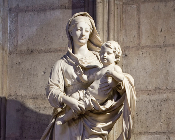 The statue of the Virgin with child is also prayed to under the name "Virgin of the Students". Made of marble, the statue stands 182 cm tall and is from 1722. It is the work of François-Antoine Vassé (1681-1736). It stands in the north transept of Notre-Dame Cathedral.